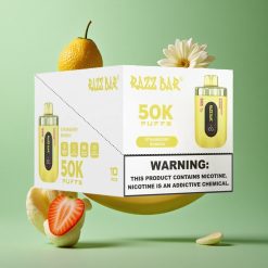 Razz Bar 50K Puffs Eldobható E-cigaretta Eper Banán 1.0 Ohm Mesh Coil és 650 Mah Akkumulátor